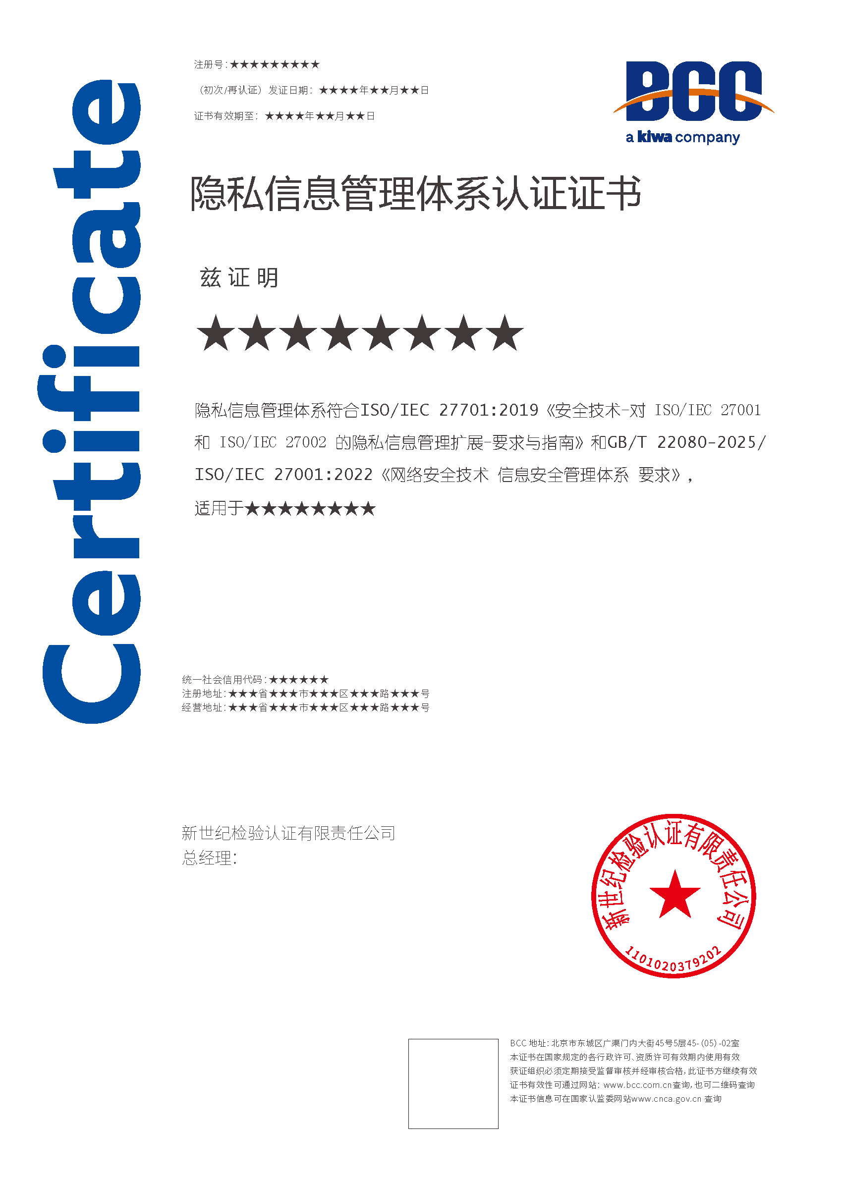 本頁涉及的認(rèn)證服務(wù)中均有對應(yīng)的《認(rèn)證實施規(guī)則》,BCC擁有其最終解釋權(quán)。任何組織及個人未經(jīng)BCC許可,不得以任何形式全部或部分使用(法律要求除外)認(rèn)證相關(guān)信息。如需獲取相關(guān)實施規(guī)則請用以下方式聯(lián)系獲?。弘娫挘?10-58579316   郵箱:fwjs@kiwa.cn