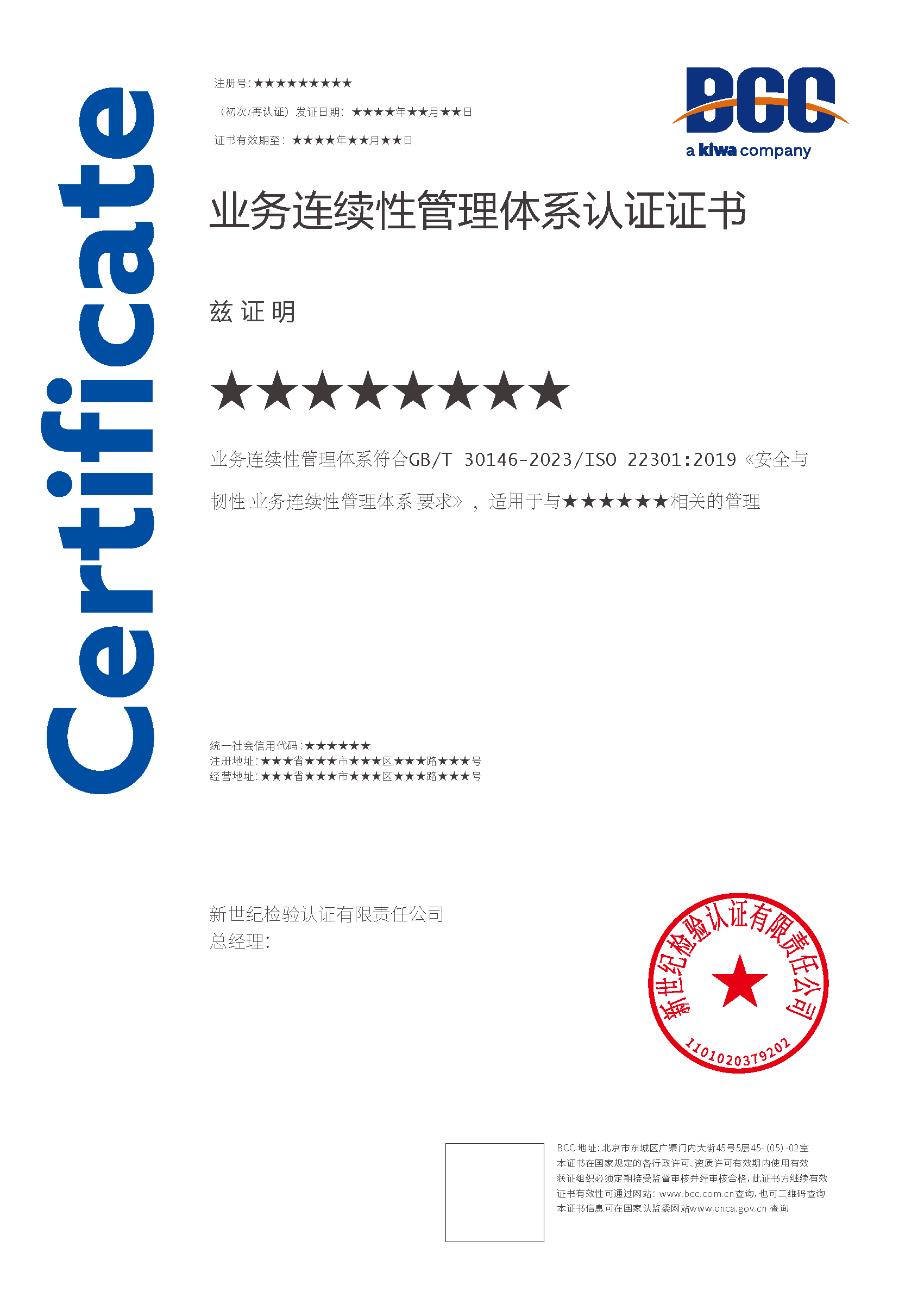 - 2021-03-03 09:34:09 BCC獲得業(yè)務連續(xù)性管理體系CNAS認可資格