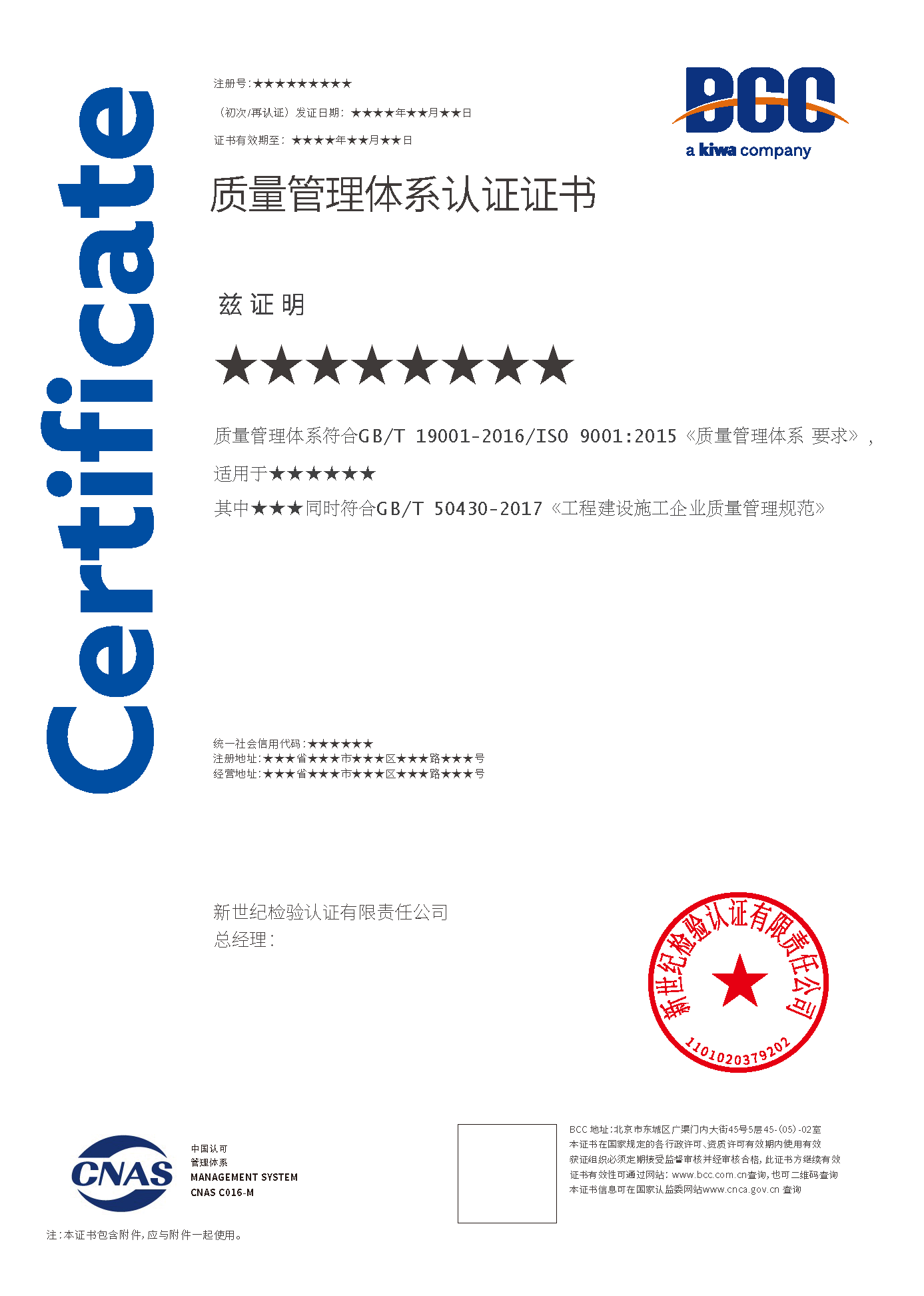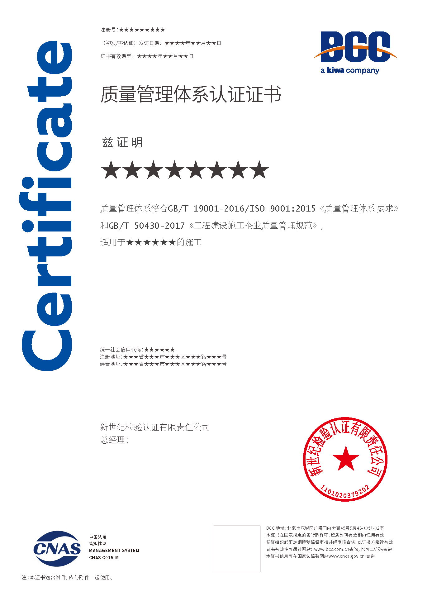 質(zhì)量管理體系證書(建筑施工50430) 質(zhì)量證書(一部分是50430) 質(zhì)量管理培訓(xùn)體系證書