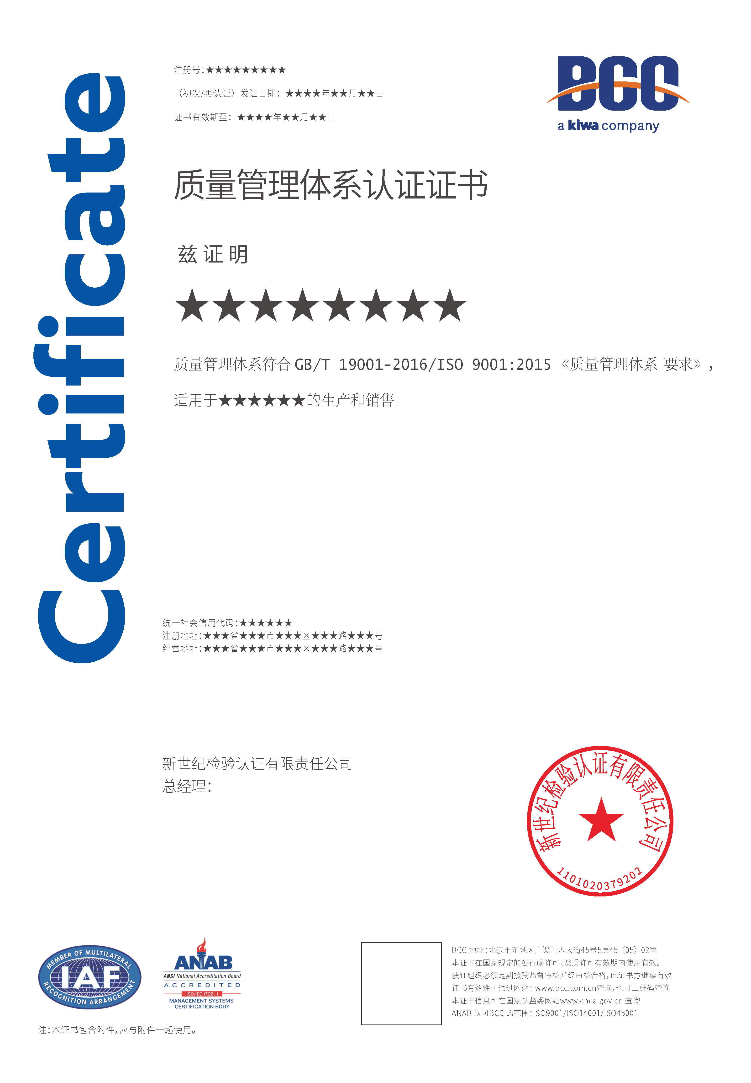 本頁涉及的認(rèn)證服務(wù)中均有對(duì)應(yīng)的《認(rèn)證實(shí)施規(guī)則》,BCC擁有其最終解釋權(quán)。任何組織及個(gè)人未經(jīng)BCC許可,不得以任何形式全部或部分使用(法律要求除外)認(rèn)證相關(guān)信息。如需獲取相關(guān)實(shí)施規(guī)則請(qǐng)用以下方式聯(lián)系獲?。弘娫挘?10-58579316   郵箱:fwjs@kiwa.cn