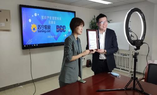 “云頒證”儀式,BCC為蘇寧易購(gòu)頒發(fā)知識(shí)產(chǎn)權(quán)管理體系認(rèn)證證書!