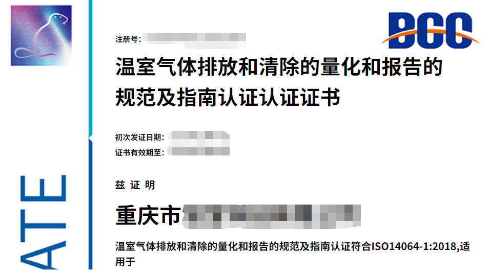 助力綠色轉(zhuǎn)型,BCC為重慶某公司頒發(fā)溫室氣體核查證書!