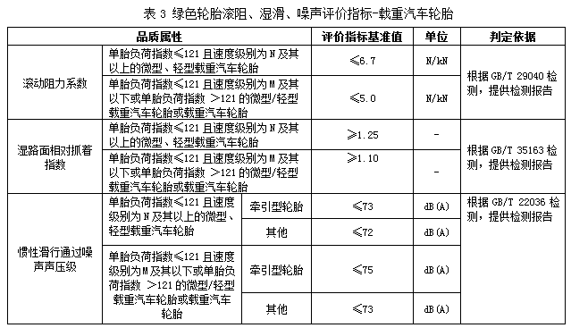 對(duì)于轎車輪胎和載重汽車輪胎,需同時(shí)滿足生產(chǎn)企業(yè)基本要求、產(chǎn)品基本要求,以及資源屬性、能源屬性、環(huán)境屬性和品質(zhì)屬性等指標(biāo)要求,才能夠被判定為綠色輪胎產(chǎn)品。